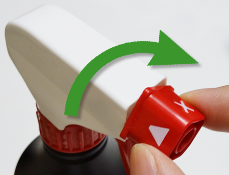 お使いになるときは写真画像のようにスプレー部を噴射位置に回してお使いください。